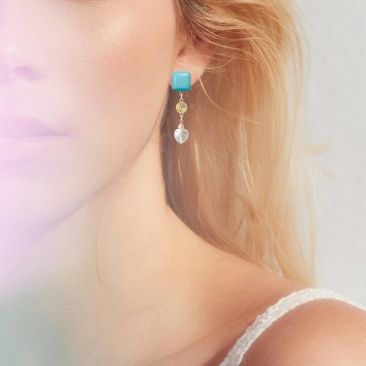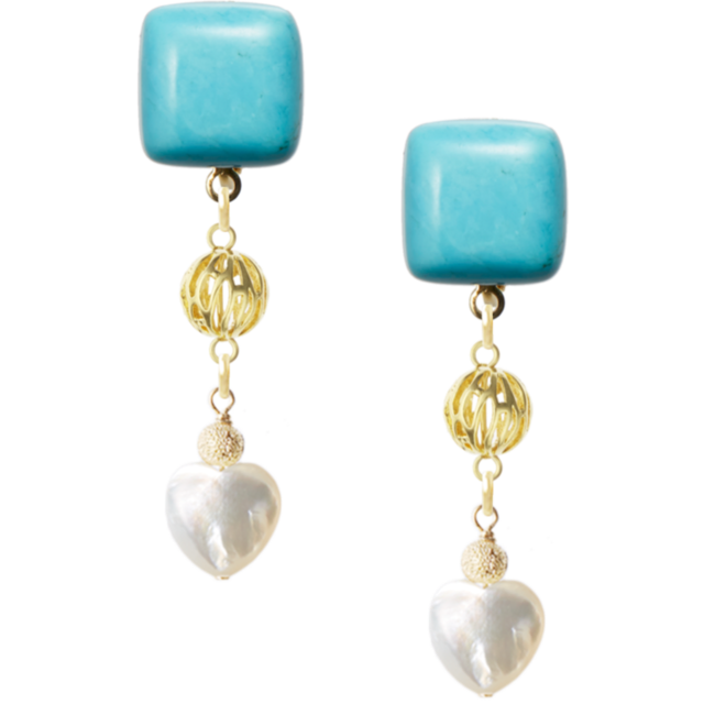 天然石ターコイズとハート型パールのイヤリング(No127)