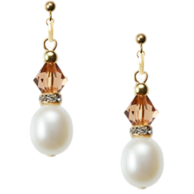 淡水パールとスワロフスキーの14KGFピアス/スモークトパーズ(No125)