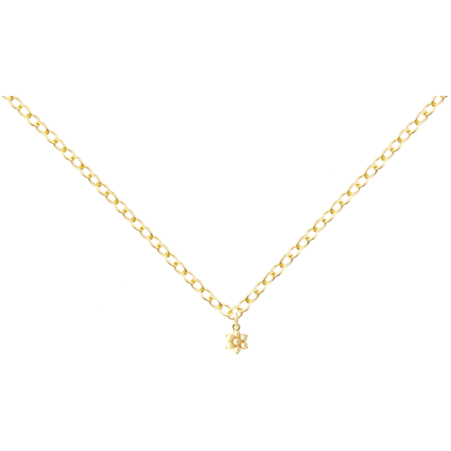 雪の結晶モチーフの14KGFアズキチェーンのネックレスです。